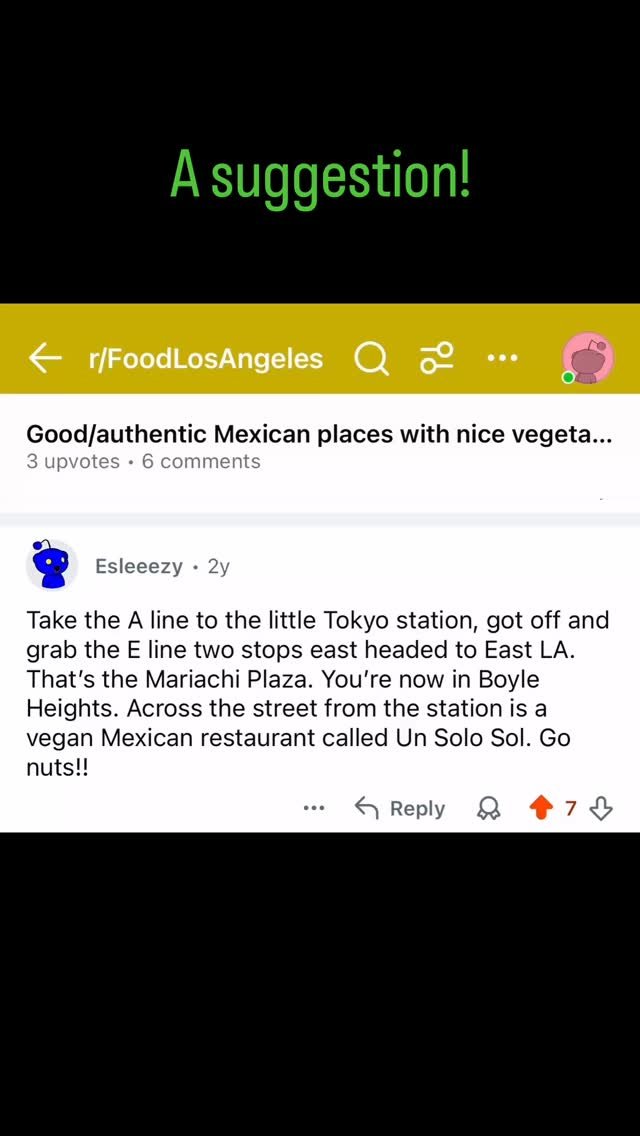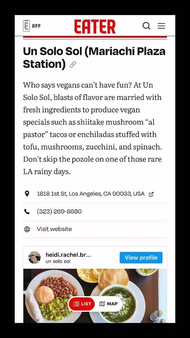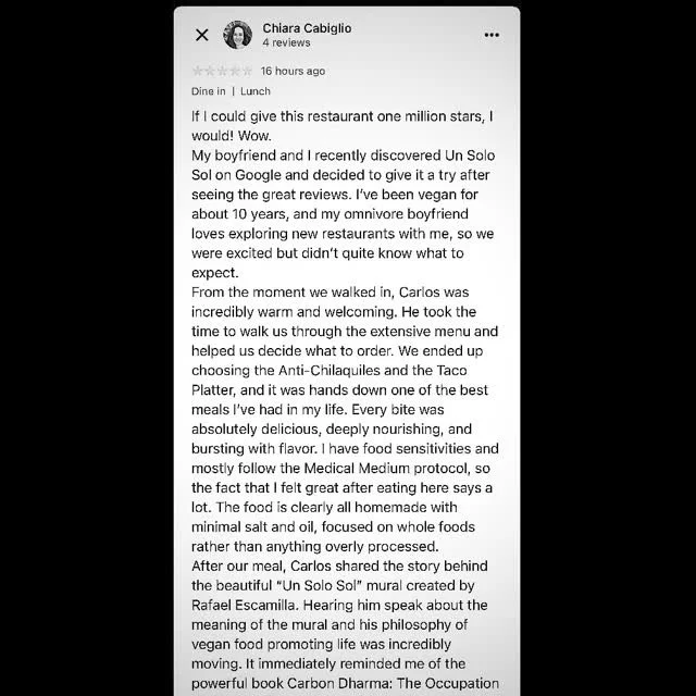“This place deserves more than five stars, but Happy Cow doesn't allow reviewers to give five starts to Veg-friendly places. Awesome pupusas and the best vegan Latin American food you can find in LA without any question. The portions are perfect and the food is nicely cooked and seasoned. Forget about the trashy Latin vegan food you will find in most LA vegan restaurants. Un Solo Sol serves legit/real Latin food. Service is very friendly and professional. It is very convenient to get to this restaurant using the gold line.”